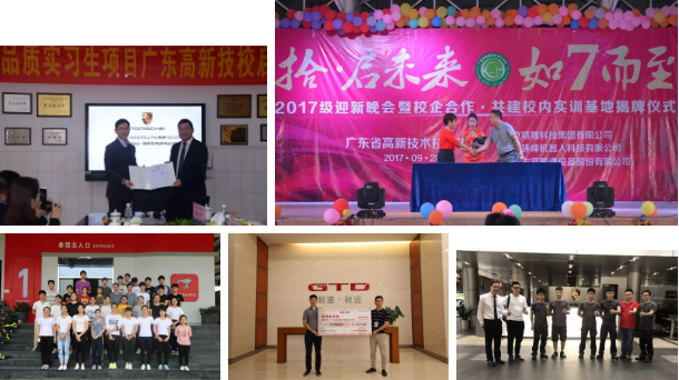 目前,我校已與1000多家大中型企業簽訂了校企合作協議,包括:保時捷(中國)汽車銷售有限公司、周生生珠寶(佛山)有限公司、廣州晶東貿易有限公司、佛山志高暖通有限公司、明道文化科技集團、廣東卓符教育管理有限公司、傳智播客·黑馬程序員、廣州明謙教育投資管理有限公司、北京精雕(東莞)分公司、廣州萬旭餐飲管理有限公司、廣州漢典裝飾設計工程有限公司等等。