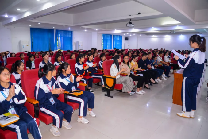 谷希歐公司董事長袁應權、總經理陳彥榮、業務骨干雷麗紅,高新技校校長助理孫建華、教務處處長田春元、經貿系主任向莎莎、商務外語專業負責人劉敏、17商務外語高技班主任陳靜儀、商務外語組全體教師出席了儀式,17商務外語高技班全體同學來到了現場。17商英高技班諸敏同學擔任了本次儀式的主持。