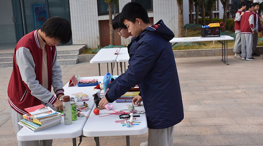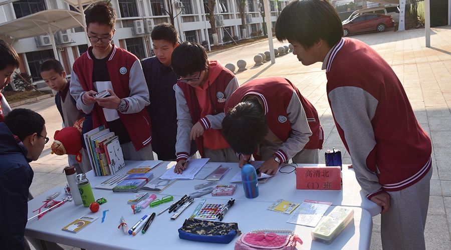 1月5日下午3:30,學(xué)部各班級同學(xué)就迅速行動起來,將精心準(zhǔn)備好的義賣物品、橫幅、銷售裝備等拿到攤位。各班級快速有序的將自家“超市”布置完畢,校園瞬間被點燃,集市人山人海。每家“超市”都別出心裁的通過標(biāo)語、口號展示自家店鋪的特色。